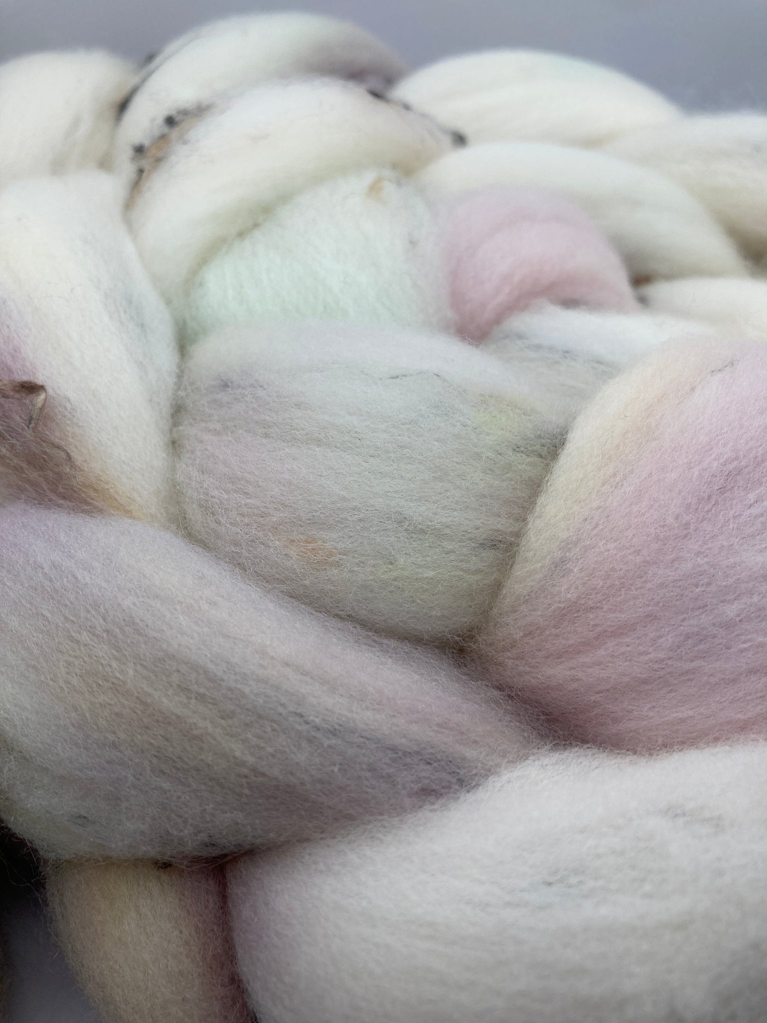 4oz of 89/6/5 Non Superwash Shaniko/Acrylic/Rayon tweed, processed for above-standard ease of drafting.
