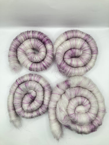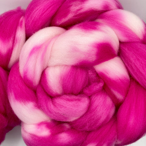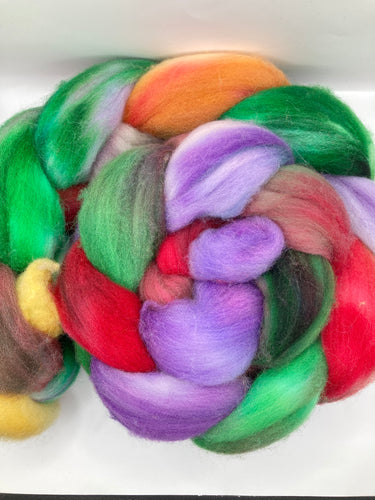 Check out our lovely collection of rovings! Each braid is hand dyed in house. All of our wool rovings are sold in approximately 4oz braids unless noted otherwise. At KnitzAndPearls Fiberworks, we take pride in how each braid produced here is lofty, airy, and easy to draft. We currently carry the following wool bases: